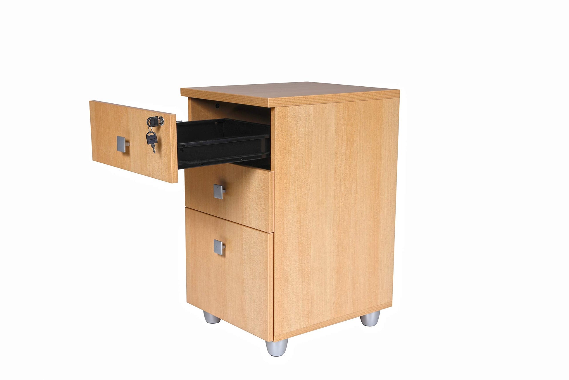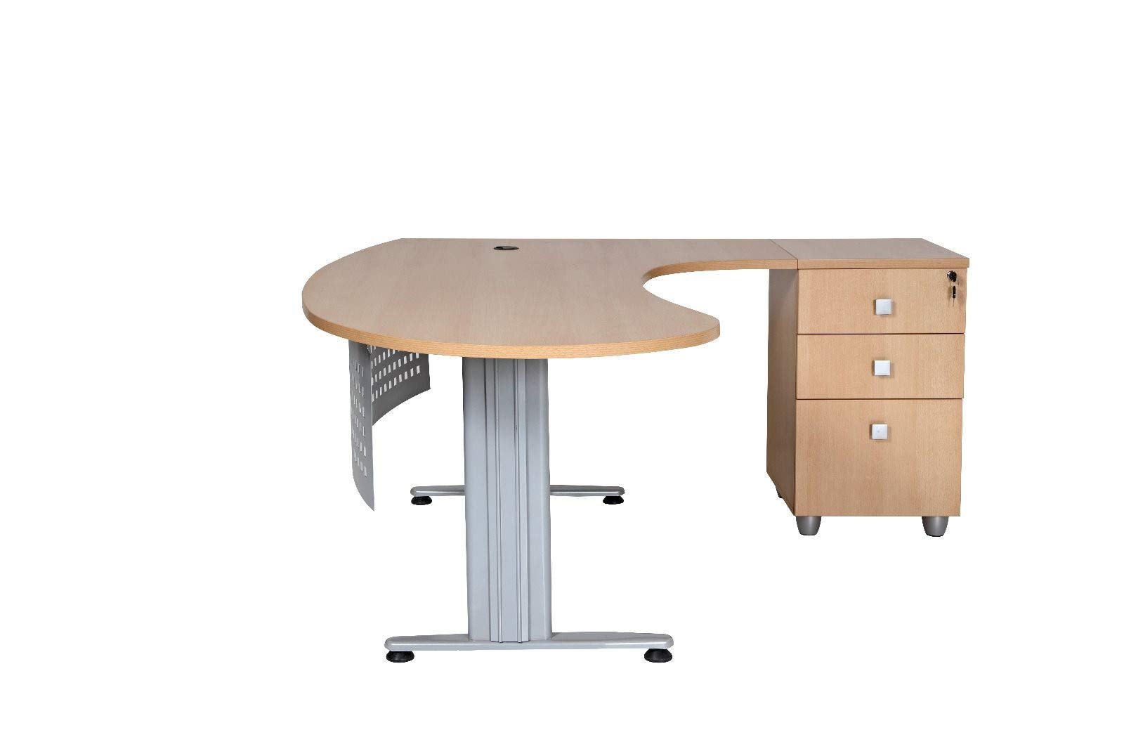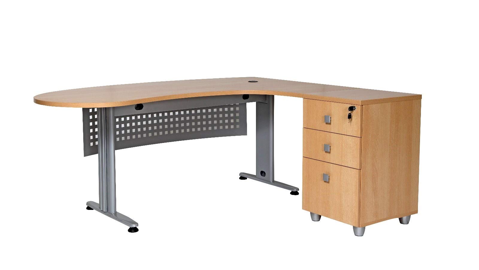 Furni24 Gela Winkeltisch Buche Dekor rechts, Große Arbeitsfläche, inkl. Beistellcontainer
