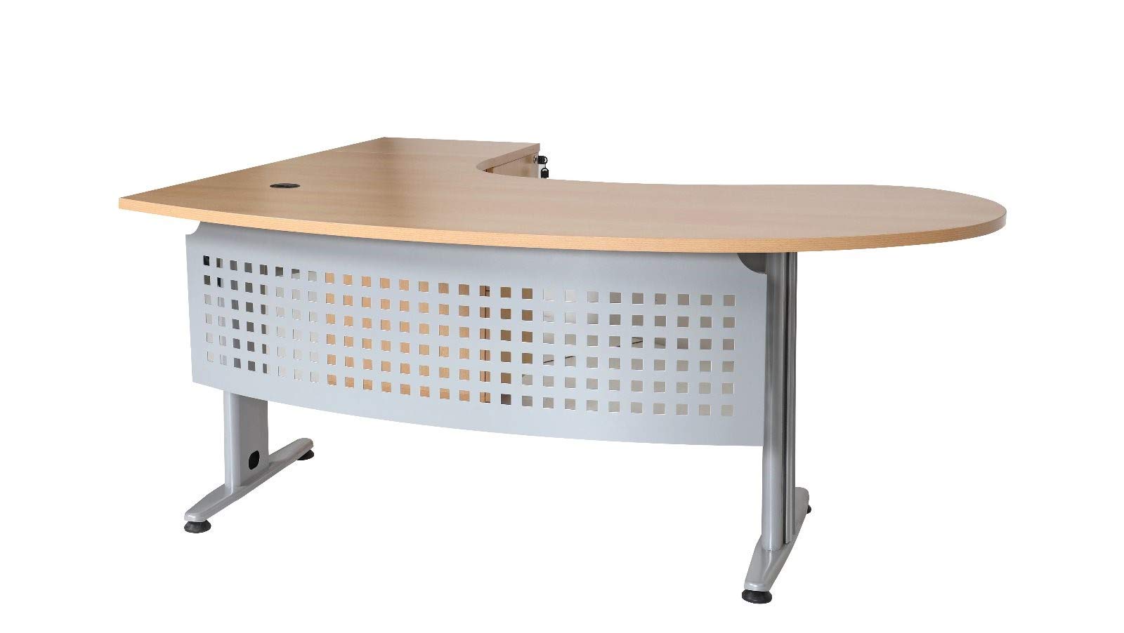 - Der Tisch ist 180 cm x 120 cm x 74 cm groß und ist für Monitor, Laptop, Tastatur und Dokumente völlig ausreichend. Außerdem ist auch genügend Platz für einen Drucker und Scanner. Mit seiner 25 mm dicken Tischplatte ist es extrem langlebig und stabil Das geschwungende Disgn lässt sich sehr schön als Raumteiler mitten in den Raum stellen, die Rückenblende verdeckt Kabel und Computer