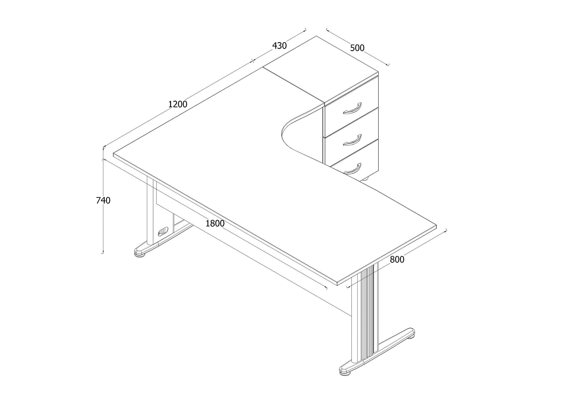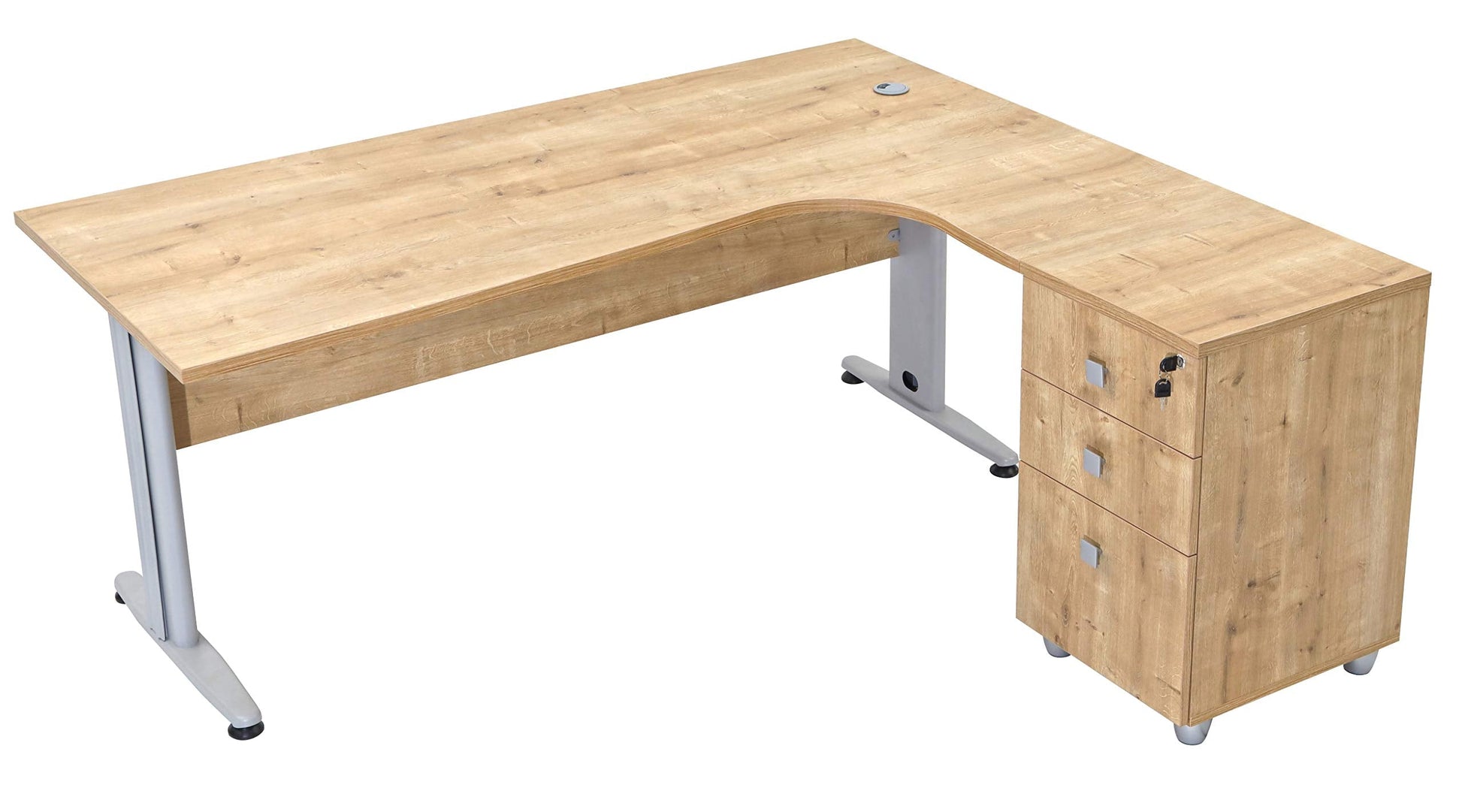 Furni24 Dona Winkeltisch Eiche, 180x120x74 cm, inkl. Beistellcontainer rechts gewinkelt