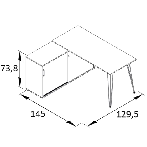 - LIEFERUMFANG - 1x Eckschreibtisch 1 Schreibtischplatte 2 Schiebetüren (abschließbar) 2 Konstruktionsböden höhenverstellbare Füße zum Ausgleich von Unebenheiten Fachmaß je B/H/T ca. 62,5/32,5/33 cm, Gesamtmaß B/H/T ca. 100,1/83,6/41 cm
