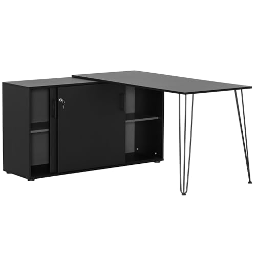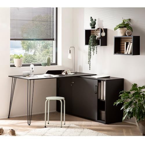 Lomadox Eckschreibtisch Schwarz, moderner Büroarbeitsplatz mit integriertem Aktenschrank