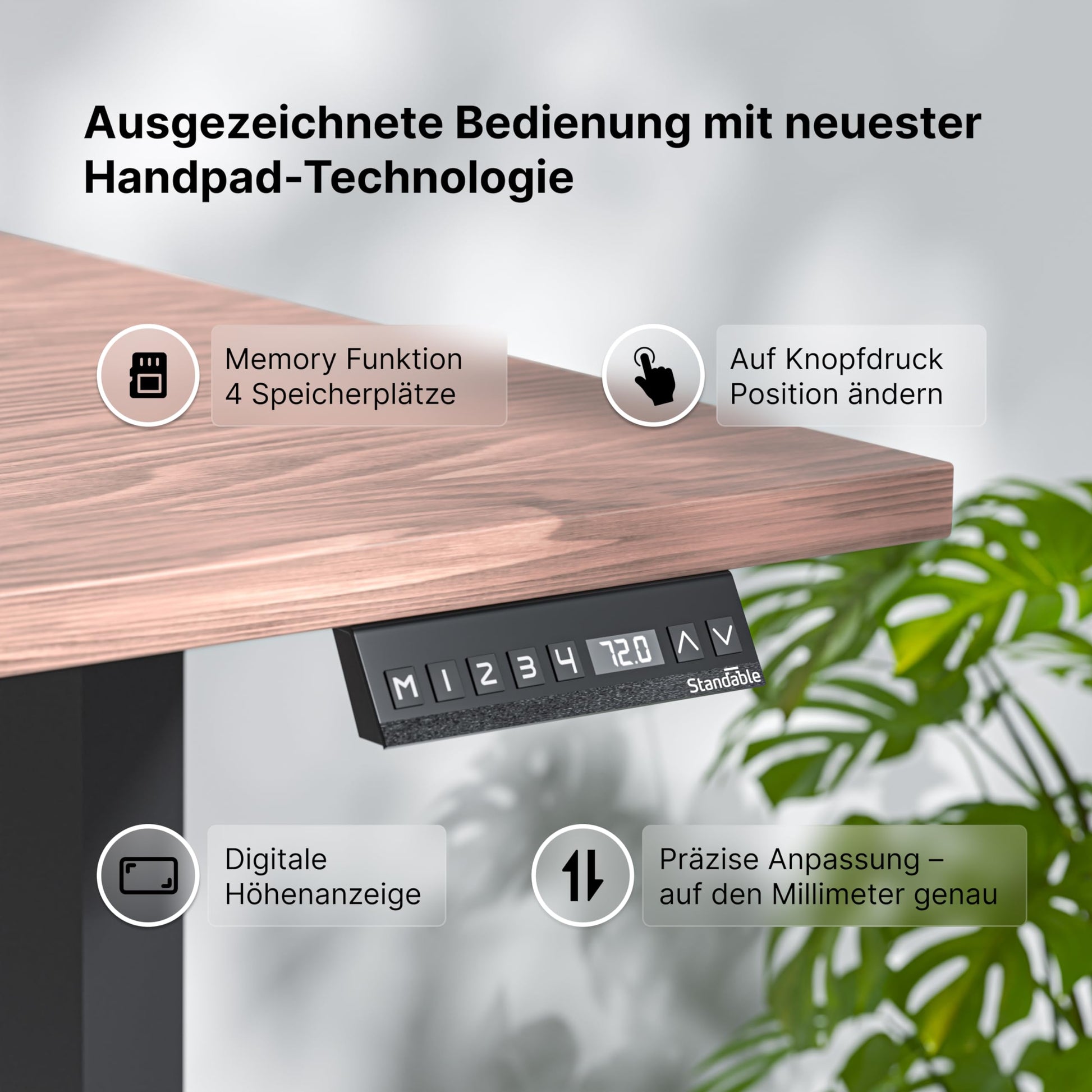 Standable Desk 200x90 cm, Elektrisch höhenverstellbar (70-120 cm), 4 Speicherstufen, Ergonomisch